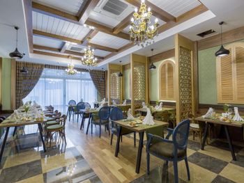 На территории отеля работает 3 ресторана с открытой планировкой, где подают блюда интернациональной, итальянской и турецкой кухни. Гости также могут насладиться свежими морепродуктами в ресторане. В баре отеля можно заказать прохладительные напитки.