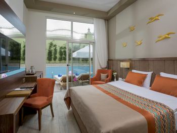 Отель не понравился. Бронировали через Booking, написано первая линия. По факту наверно третья, ходит шатл до пляжа. Территории можно сказать нет совсем. Погулять там нельзя, только узкие дорожки до столовой и до бассейнов (их два). Собрались пойти в хамам, запросили халаты с тапочками, нам ответили что в отеле такого нет.. Во второй половине недели приехало очень много отдыхающих, мест не хватало в столовой, приходилось ждать, лежаков и мест за столиками в кафешке на территории тоже не хватало. Ждали конца нашего отдыха и с удовольствием уехали с этого 5* отеля :)