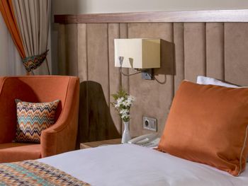 Жёсткие кровати Полотенца поменять можно только до 10.30 утра! и только в спа🤦‍♀️ Ни рядом с бассейном, ни на пляже нельзя На пляже тетушка, которая печёт лепёшки - любит или турков, им она печёт штук по 6-8 за раз и болтает с ними на турецком, либо пожилых немок, которые ей оставляют чаевые - и им она делает без очереди, остальные ждут и получают максимум пару штук за раз и порцию ругани, что типа все, больше нельзя, закончились, и вообще вон очередь стоит В ресторане тоже есть официанты, которые при виде русских закатывают глаза и делают вид что не замечают тебя, и на просьбу чай принести - отправляют в бар, при этом за соседний стол немцам норм приносят из бара Логика вообще странная... десерты в ресторане, но чай или кофе к десертам - в баре, и официанты чай принести из бара не могут, при этом выйти с десертами на террасу к бару тоже нельзя, ага Афигенные «логичные» правила Еда не вкусная по сравнению с другими отелями, где мы были (IC Green, Alva Donna, да даже в маленьком отеле в Олюденизе и то было вкуснее). Многое пережарено, выбор не очень большой, арбузы не вкусные. Коктейли все тоже странные, выглядят красиво, но то сиропов перебухано, то смешано несочетаемое, то просишь Бейлис налить - приносят что-то вообще не похожее на него. Пиво как будто разбавленное. Нормальное только в мини-баре в номере Кофе в ресторане ужас, а вот в баре рядом и кофе шопе ещё более менее Официанты в ресторане не справляются , бегают просто в мыле (а ведь сейчас не сезон) В ресторане еду накладывает 1 сотрудник, в итоге очереди везде Соки все химически разбавленная вода, свежевыжатый сок на завтраке 2 евро! Коктейли на пляже тоже платные На ресепшн сотрудники тоже на кого попадёшь - один как только слышит русскую речь - сразу отправляет искать гэст рилейшнс- типа все вопросы к ним Но я с ним принципиально говорила на английском, и он после 5 напоминания делал что просили Его коллега - более сговорчивый парень и очень понравился Вобщем в следующий раз в другой отель