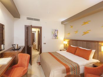 Среднестатистический большой турецкий отель. Еда, алкоголь, анимация - всё как везде. Минибар пополнить забывают. Косметические наборы тоже выдаются только один раз. Море близко, Шатл не нужен. Интернет хороший. Особого восторга отель не произвёл, но и не плохо.