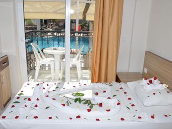 Отношение персонала ресепшена: все улыбаются, кивают, но никто ничего не делает. Английский язык не знают, русский тем более. Уборка в номерах не проводится, надо просить несколько дней. Проблемы с горячей водой, отсутствует либо невозможно отрегулировать температуру воды, Wi-Fi практически отсутствует, сейф в номер заказать невозможно. На пляже душ со сломанной лейкой, приходилось пользоваться душем других отелей. Телефоны в номерах не работают. Мало зелени, утром в 6-00 приезжает машина, которая вывозит мусор и раздается грохот контейнеров, при открытом балконе спать невозможно. К открытию сезона отель был не готов. Пришлось сменить несколько номеров, искали номер с работающей сантехникой, холодильником и т.д.
