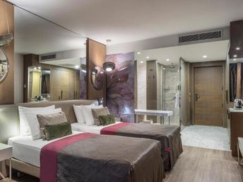 The rooms at Side Star Elegance Hotel - Ultra All Inclusive come with modern furnishings. They all feature a private bathroom with shower and hairdryer. The minibar is filled with sof drinks and beer everyday.