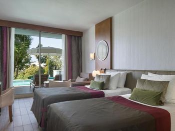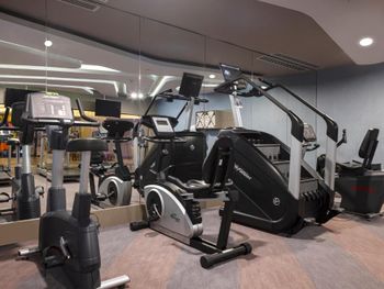 Немного сложная архитектурно система переходов между блоками. Первое время можно запутаться. Также на фото не совсем понятно, но расположение раковины и душевой кабины очень необычное. Туалет и душ находятся сразу при входе, а раковина отдельно как будто уже в самой комнате. У нас был семейный номер и это доставляло некоторый дискомфорт. Кроме того, отсутствие возможности погладить вещи самостоятельно. В отеле нет гладильной комнаты и утюг не выдается по запросу. Можно воспользоваться только прачечной услугой, которая является платной. Впервые столкнулась с таким в отеле. Пришлось заплатить 20 € за 2 платья. Тренажерный зал довольно подуставший, со старыми тренажерами, которых совсем немного.