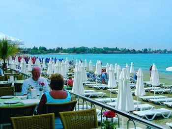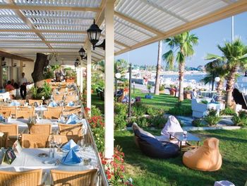 Ужин может быть подан на открытой террасе под навесом с видом на Средиземное море. Кроме того, вечером в баре отеля Side Star предлагаются коктейли, и устраивается караоке.