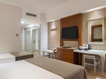 К услугам гостей этого отремонтированного отеля, расположенного на пляже в городе Сиде, 2 бассейна, танцпол и спа-салон. В элегантно оформленных номерах оборудованы собственные балконы, с которых открывается вид на сад или море.