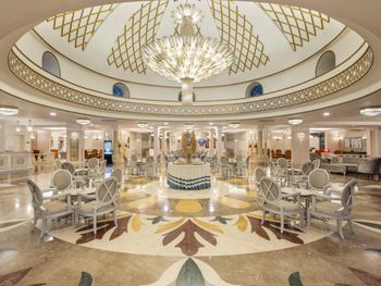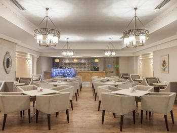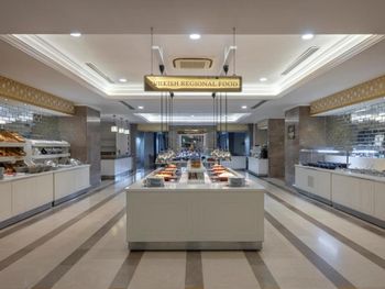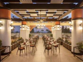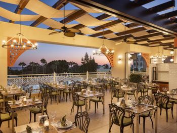 В главном ресторане с утра до позднего вечера подаются блюда интернациональной кухни. К вашим услугам 3 бара и бар у бассейна, в котором во второй половине дня подаются пирожные. В роскошной обстановке лаунджа с куполообразным потолком можно отведать мятный чай.