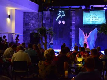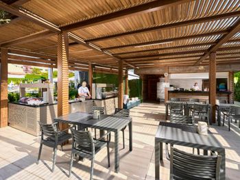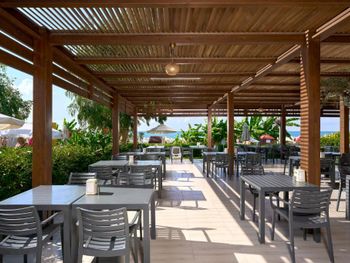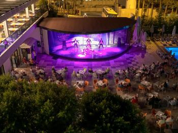 Почти все номера расположены окном на шумное в вечернее время место, где проходят представления и дискотеки. До 23:30 музыка гремит. Даже закрытые на балкон двери не помогают. Территория отеля небольшая, расположена узкой полосой перпендикулярно берегу. Поэтому наблюдается много суеты вокруг отеля, передвижение людей из многочисленных окружающих отелей, машин, автобусов. Если хотите релакс, то это место не подойдет.