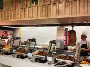 - кухня отличная, очень порадовало наличие не приторных десертов; курица, индейка, говядина, баранина, мидии, кальмары, разнообразные овощи и фрукты, мезе, голодным вряд ли кто-то останется; отдельное спасибо за фрикадельки из баранины на гриле