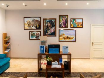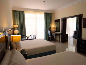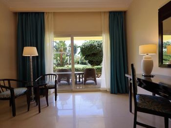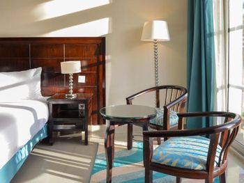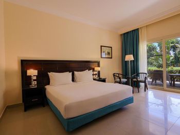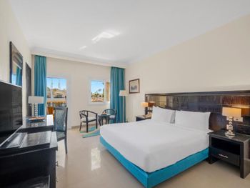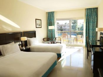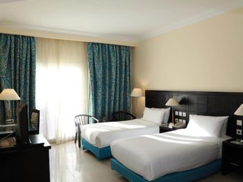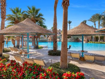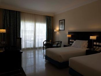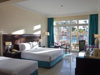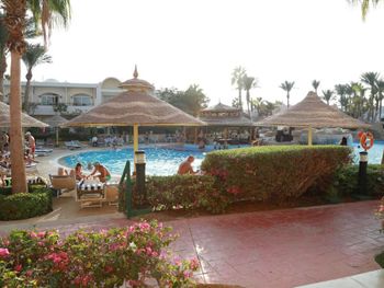 Встретили нас с сыном в аэропорту. Уже неплохо. Ехали 10мин. Номер был большой и убирали его хорошо. Постель удобная, вылазить не хотелось. Пляж нам показался довольно большим и чистым. Риф-малоинтересный, дальше по берегу в Хилтоне он с пещерами и туннелями. На 3й день рыбки уже надоели и мы просто плавали в этом прекрасном Красном море. Питание отличное, на любой вкус. Гриль на улице никогда, видно, не чистят, поэтому мясо всегда было обгорелое. Но и без гриля всего хватало. Понравилась красивая ухоженная территория. Анимация слабая, ребят-аниматоров видели, в-основном, на пляже и в ресторане. Но нас это не напрягало, даже наоборот-приехали на турниры и спокойно могли вечером заснуть. Нижний выход из отеля - прямо на Сохо. Вечером там хорошо прогуляться-десятки кафешек и магазинчиков типа "настоящий луивуитон только у меня, от 15$, но могу дать скидку только для вас", эстрада, музыка, танцы и песни. Целый театр металл. скульптур. Ну и 90% от все туристов и 100% всего персонала говорит по-русски.