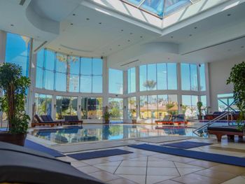 - Большой, красивый, тёплый центральный бассейн. Также есть ещё тёплые бассейны поменьше.
