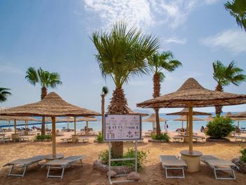 - Очень хороший пляж, песок, пальмы, есть небольшой плавный заход в море для детей. Красивые рифы, особенно красивые если проплыть влево или вправо от отеля.