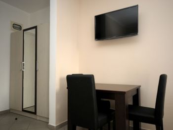 Во всех studio: терраса, кондиционер, спутниковое ТВ, мини-кухня , туалет , фен, чайник,
