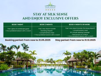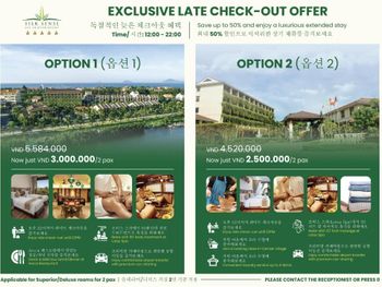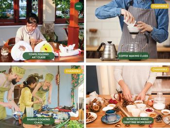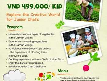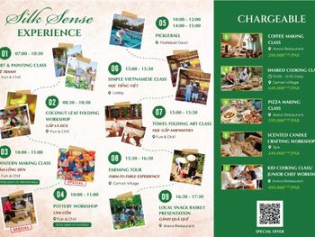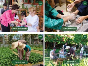- Daily free activities (Tai Chi class, Farming tour, Coconut leaves handicraft class, Steamed rice paper making show, Caman afternoon tea, Amenities wrap class, lock snack,...)