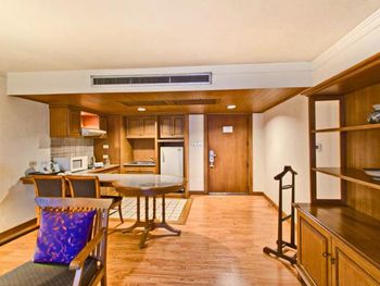 Rooms at Silom Serene come with wooden flooring and furnishings. Each room has cable/satellite TV, a safety deposit box and a fridge. The private bathrooms are fitted with a bathtub and shower. Some rooms also have a living room and kitchen with dining area.