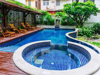 Guests can unwind at our serene outdoor pool, measuring 6 x 10 meters, offering ample space for relaxation and leisurely swims amidst a tranquil garden setting.