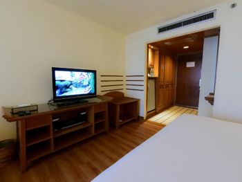 Очень шумно работает кондиционер.Заказывали тур "Сафари парк" в отеле, организация трансфера была неудовлетворительная, ехали в 12-ти местном микроавтобусе в количестве 15 человек ,еще и пришлось ждать других туристов в душном фойе их отеля целый час.При предъявлении претензии по этому поводу менеджеру отеля, ответ был шокирующий, а что вы хотели ?! тур был дешевый!!, при этом мы заплатили за 2 взрослых и ребенка 3750 бат, а это согласитесь не дешево.
