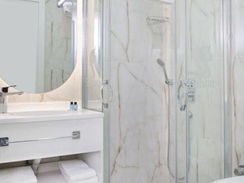 Из минусов — в номере нет халатов, но это не критично. Также в зоне завтрака в холле столы расположены не очень удобно, но в целом это не испортило впечатление от проживания.