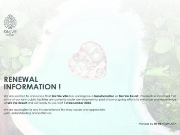 Наше пребывание в Sini Vie Villa было просто прекрасным! Все, начиная с зоны ресепшн, очень красиво оформлено, дорожка до вилл утопает в зелени. Есть кафе, где можно поесть или выпить кофе. Сама вилла небольшая, стильная, много приятных деталей, мебель новая, классный большой бассейн, джакузи под навесом на улице - все очень понравилась. Везде идеальная чистота, отличная уборка. Персонал просто безумно приветливый и отзывчивый, отдельная благодарность! Жаль, что провели там всего несколько дней, не хотелось уезжать.