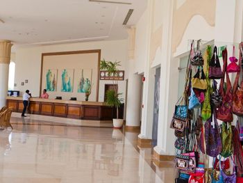 Грязный номер. Вокруг грязные пледы, в магазинах при отеле супер навязчивые продавцы, бегали за мной по всему отелю и пытались продать масло. В номере нет шампуней, щеток, халатов