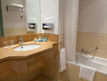 Отель достаточно старенький, поживший, горячая вода есть, но теплая. Снимали номер именно с ванной, это было важным в принятии решения, в результате затычки для ванной не было, а когда придумали как заткнуть выяснили, что вода не достаточно нагревается, для принятия ванной. Wi-Fi работает только в одном месте отеля и очень медленно.