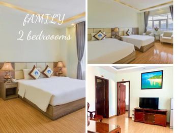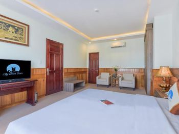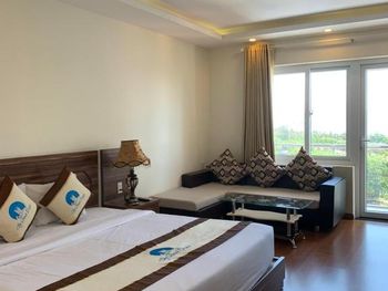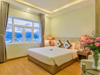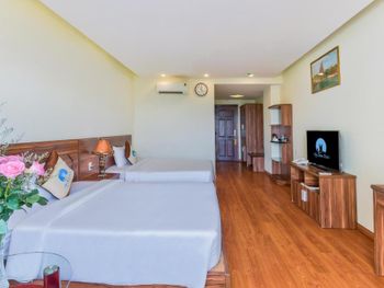 Описание номера люкс в букинг не соответствует. Номер был 22кв вместо 37кв. Грязный номер. От пола до постельного белья. Кондиционером невозможно было пользоваться, так как при включении сильно пахло плесенью. Думаю это даже опасно для здоровья. Дверь в туалет не закрывается. С пляжа доносится музыка от местных кафе. Шумно до 2:00 ночи. В общем, отель в стиле 90х. Мебель и ковры в плохом состоянии. Номера плохо убираются. В отель привозят группы вьетнамских туристов автобусами. Через дорогу автобусная станция или парковка. Персонал старался быть приветливым. Мы не смогли остаться там более 1 ночи. Сотрудники пошли нам на встречу и выселили нас с возвратом денег за оставшееся оплаченное время.