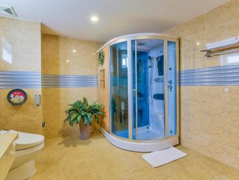 Странное расположение бассейна - у входа со стороны улицы. Холодильник не регулируется по температуре, хотелось сделать похолоднее. Жесткая кровать. До основного туристического района на набережной - 10-15 минут пешком.