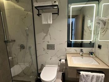 Душ со следами старой плесени по углам, и, к сожалению, меня удивили прусаки как в номере, так и на этаже возле лифта. Простыни с дырками. Завтрак очень скудный. Никаких тебе национальных сладостей и скромное предложение солёных блюд.