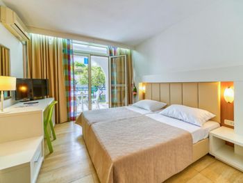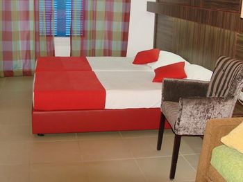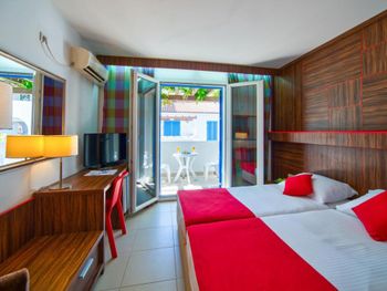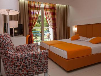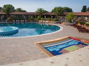 Замечательный отель, состоит из нескольких трехэтажных вилл, расположенных на достаточно большой территории. На территории имеется все необходимое для отдыха, в том числе два больших бассейна, детская площадка, столовая, кафе и ресторан, магазинчики и киоски. В номерах, кафе и у бассейнов работает WiFi. Пляж рядом, через пешеходную дорожку. Почти во всех номерах есть балконы.