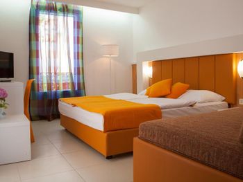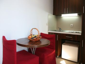 По приезду нам предоставили просторный номер с кухней и большой террасой, за что хочется сказать большое спасибо!!! Уборка в номере, смена полотенец - ежедневно! На завтрак выбор не очень большой, но все что надо есть (омлет, отварное яйцо, сосиски, бекон, овощной салат, нарезки, каша, мюсли, йогурт, фрукты). Ближайший пляж (каменистый) - 3 минуты от столовой.
