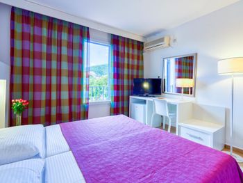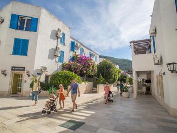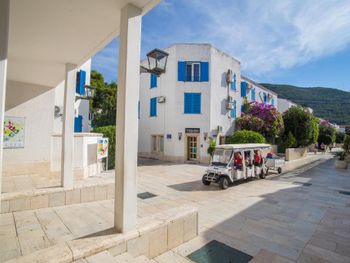 Большая зеленая территория, собственный парк. Продуктовые магазинчики прямо в комплексе у каждой виллы. Уборка в номере ненавязчивая, уберут только если повесишь табличку. Питание на завтрак однообразное, ужины вполне себе ничего. Море совсем рядом, пляж около отеля - узкая полоска с крупной галькой. Лучше ходить на пляж в Бечичи или ездить на катере на пляжи справа от Будвы. В целом, хороший отдых.
