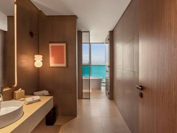 One Bedroom Atelier Suite - 69-100 м², макс. 2+2/4 чел., вид на море | двуспальная кровать, ванная комната