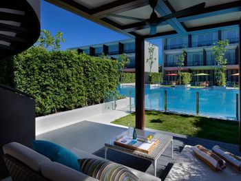 Просторные, дизайнерские номера, очень немноголюдно-атмосфера небольшого закрытого клуба, бассейн очень удобен с точки зрения купания с маленькими детьми, красивая, компактная, но очень продуманная территория. Полотенца всегда разложены по лежакам, сами лежаки далеко друг от друга и часто свободны. в этом отеле люди как-то далеко друг от друга автоматически и кажется что вокруг никого. За это огромный плюс, обычно такая приватность стоит совсем других денег.