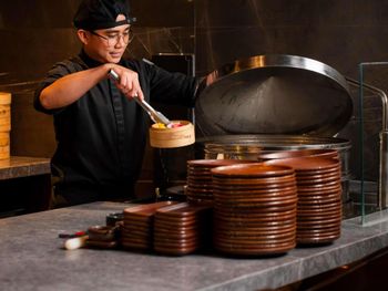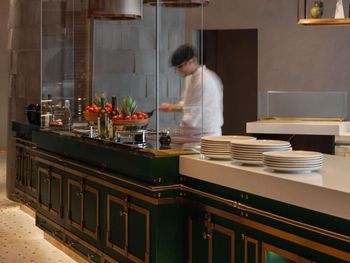 Гостям подают завтрак по меню, континентальный завтрак или вегетарианский завтрак. При SO/ Uptown Dubai работает ресторан, где подают блюда французской кухни, блюда итальянской кухни и блюда азиатской кухни. Гости могут попросить приготовить вегетарианские, безлактозные и халяльные блюда.