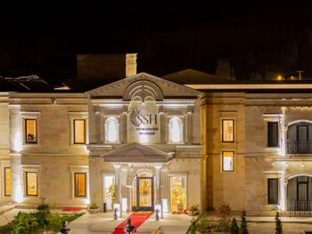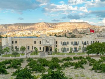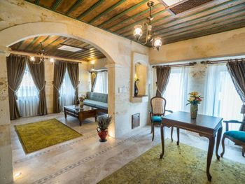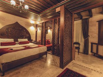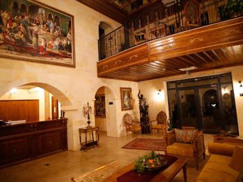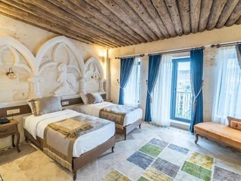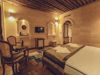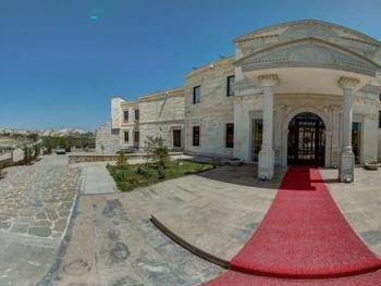 прекрасный новый отель, расположенный на противоположной стороне от взлетной площадки воздушных шаров. хорошие завтраки, просторные номера в османском стиле. есть два бассейна (один из них крытый), сауна. Удобные матрасы и подушки. Очень тепло в номере зимой (я бы сказала слишком). Из окон открывается прекрасный вид на взлетающие шары, а из коридора вечером на подсвеченную крепость Учхисара. Нет проблем с паркингом. хороший интернет.