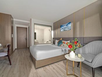 При заселении я показала свой ваучер, парень на ресепшн попросил ждать 14:00, я сказала ОК, со мной было ещё 2-3 семьи и их расселили до 12:00, а мне с двумя детьми он твердил ждать до 14:00. Я подошла ровно в 14:00 и он сказал, что в отеле нет мест, когда я начала разбираться, он оказывается перепутал нас с другой семьёй. Заселили нас после 14:30. нас заселили в номер 6003, с улицы слышно было шум и я потредовала нас заселить выше, так как даже в ваучере у меня было написано , что высокий этаж.
