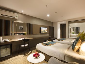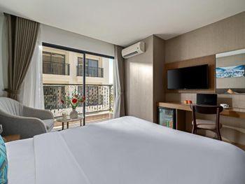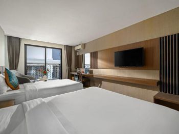 Удобное расположение объекта, не центр, но и не край географии. Отель относительно бюджетный, это и плюс и минус. Номер относительно чистый. В холле отеля чисто и приятно. Приятные сотрудники на ресепшне. Матрас достаточно удобный. Рядом достаточная инфраструктура. Есть приличные кафе по близости. До пляжа перейти дорогу. Шведский стол на завтрак. Наличие небольшого спортзала. Возможность арендовать байк в отеле за 130к на сутки. В номере каждый день убираются, приносят чай, кофе и новые полотенца. Но уборка очень поверхностная.