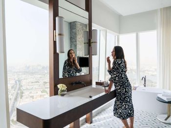 В распоряжении гостей Sofitel Dubai The Obelisk — гостиная зона и собственная ванная комната с биде, бесплатными туалетно-косметическими принадлежностями и феном. Также среди удобств есть кондиционер, телевизор с плоским экраном с кабельными каналами и сейф. В номерах есть кофемашина, а в некоторых номерах также есть кухня с холодильником, духовкой и микроволновой печью. Гостям Sofitel Dubai The Obelisk предоставляются постельное белье и полотенца.