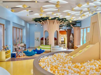 Гости могут заказать роскошные процедуры в спа-центре или отдохнуть на частной яхте. В числе прочих удобств поле для гольфа, теннисные корты и детский клуб.