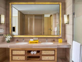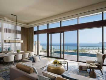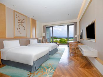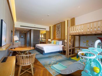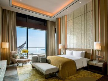 Расположение: отель расположен всего в 45 минутах от аэропорта, заказывали трансфер через отель поэтому сразу после выхода нас встретил водитель с персональной табличкой и мы не теряя времени на поиски такси прямиком отправились в отель . У отеля отличная береговая линия, любителям делать селфи в самый раз. Поскольку в наш приезд купаться было запрещено (обратное течение) то на пляже никакого не было, а возможно просто китайцы не любят плавать в солёной воде. Номера: у нас был семейный номер (два спаренных номера). Номера очень большие с огромной ванной, в комнате детей стоял виг-вам, на кроватях были плющевые пингвины. Отдельного внимания заслуживает ванная комната, она по площади занимает наверно 30% от площади номера это оооочень комфортно когда большая семья. В каждом номере балкон ( у нас был вид на море) так что мы проводили там много времени. Есть каналы на русском аж 2 :) Питание: завтраки отличные, есть все что хотите в том числе привычная европейцам еды омлеты, колбасы, сыры, сосиски, 4 вида каш, йогурты с гранолой, детокс фрешы итд. Ресторанов 3 + можно заказывать в номер, как не странно меню заказа в номер даже больше чем меню в ресторане/лобби бара. Есть китайский ресторан, рекомендую попробовать Вам там подскажут что можно заказывать дабы не вызвать у Вас отвращение при знакомстве с китайской кухней. Бассейны: штук 5 но пользовались двумя, один с подогревом большой и второй подходит для спортивного плавания. Персонал: заслуживает отдельного внимания. У нас с супругой была годовщина свадьбы и я заранее связался с отелем с вопросом что они могут предложить. И в результате мы наслаждались великолепным ужином на двоих на берегу пляжа, нас обслуживало 6!!! человек персонала, плюс живая музыка, все было украшено лампочками и свечками в общем впечатления остались на всю жизнь. В целом персонал хоть и не всегда говорит по английски, но менеджмент весь экспаты которые всегда помогали если у нас были вопросы. Отдельное спасибо Адаму!!!
