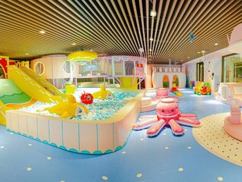 Пенная вечеринка у детского бассейна каждый день - вокруг пахнет химией, и вода в детском и основном бассейне из-за этого мутная. Вода горячая в бассейнах, мало тени. Купаться в море нельзя, но это особенность Хайтанг бей. Детскую комнату нужно обновлять, все достаточно убитое. Вертолетная площадка на территории - шумно
