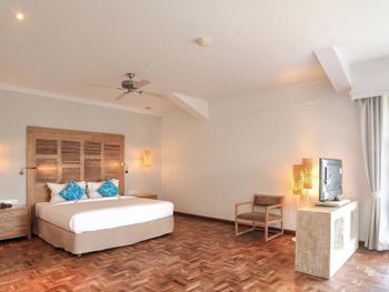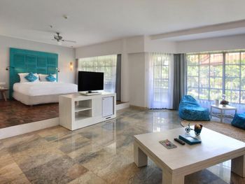 К огромному сожалению при бронировании на букинге отсутствовала информация, что отель заточен под "все включено", если вы не склонны целый день проводить на территории отеля - не рекомендую. Отвратительное отношение со стороны персонала, когда видят, что нет бирки "All inc". Пытаются заселять в самые неудобные номера. Внимание - при бронировании с букинга в описании указаны комнаты 50м2 - фото совпадают, но реально - обычные номера не более 20. Сам отель в приличном состоянии, номера уже нет, немного обшарпанные, грязноватые. Все белье и сменное - ужасно пахнет затхлостью и влажное, влажное ладно, но запах жуткий. На балконе висит блок кондея - старый -звук такой, что находиться невозможно. В номерах интернета нет вообще - только лобби и ресторан. Во всех туалетах отсутствует гигиенический душ(во время поездки останавливались в 7 отелях - этот единственный)..в душе лейка жесткая на потолке, тоже не всем подойдет. Отель расположен не очень удобно - в начале полуострова - вокруг мало магазинов и ресторанов, но не далеко от бали коллекшн. Бассейн большой, но в форме 8-поплавать не получится - только сидеть у бара или бортика. В целом тянет на 3+,4-.