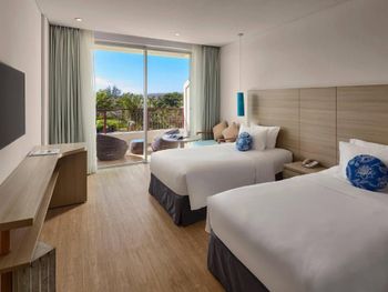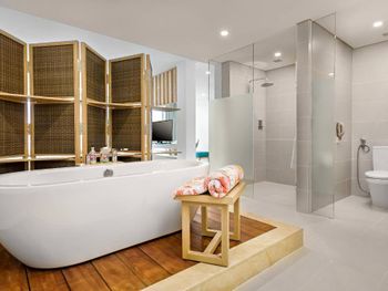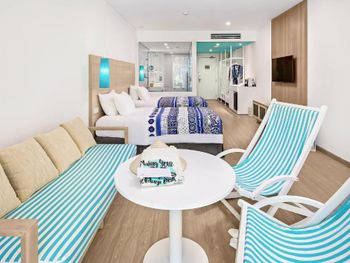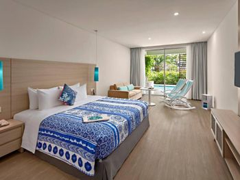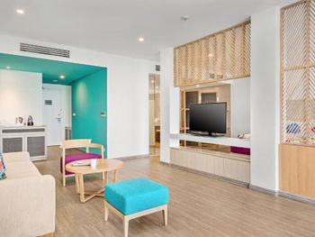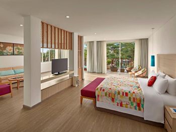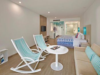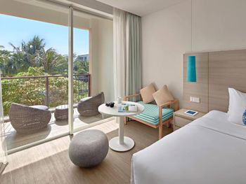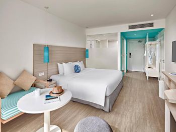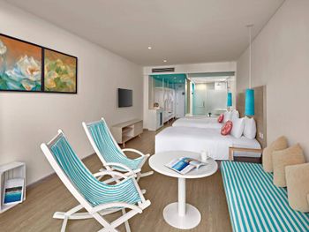 Порадовало раннее заселение (в 10ч утра) без доп.доплат. Забронированный номер категории Полулюкс Extra Beach House соответствовал представленным фотографиям. Панорамные окна с видом на море. На территории отеля очень тихо (что в некоторых случаях расценивается как плюс). Наличие разнообразных мест для отдыха возле бассейна (гамаки, круглые "шезлонги" в воде, крытые "беседки"). Бесплатный трансфер в аэропорт (по расписанию). Возможность аренды мотобайка.