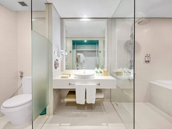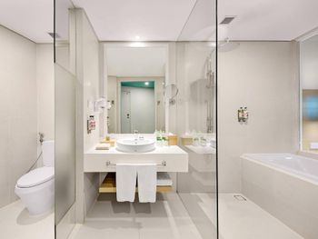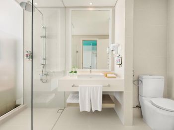 Не понравился номер, а точнее сан. узел. Отсутствие основной двери в сан.узел, полупрозрачные стеклянные двери, формально разделяющие ванную и туалет, размер которых меньше проема. Как я понял, это концепция отеля, "свободное пространство" или как-то так и такой формат во всех отелях сети. Для одного человека такой формат конечно норм, но если вы с семьей, то это крайне неудобно.