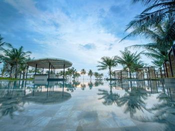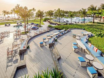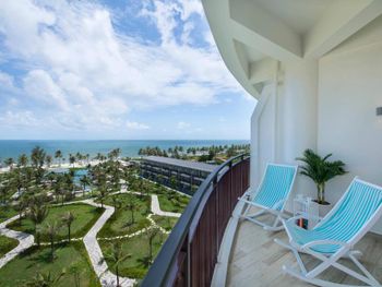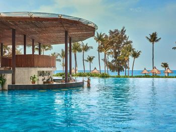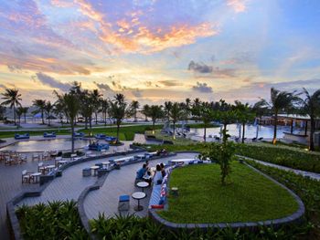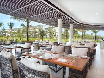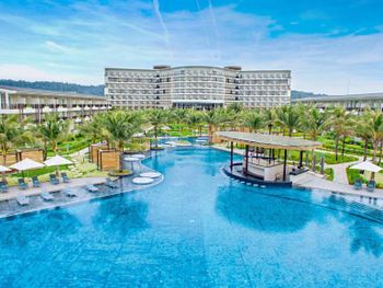 Красивая ухоженная территория с большим бассейном и собственным чистым пляжем, отзывчивый и улыбчивый персонал :) На полупансионе завтрак в формате "шведский стол" (очень большой и разнообразный, на любой вкус), а ужины по меню в трех ресторанах на выбор на территории отеля (вьетнамская кухня/испанская кухня/стритфуд). Везде комбо из трех блюд - стартер, основное блюдо и десерт, напитки не входят в стоимость, их можно заказать отдельно с доплатой. Еда во всех трех местах вкусная! В один из вечеров был кинопоказ мультика "Лука" на проекторе возле бассейна :)