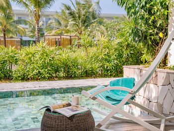 Шикарный бассейн. Отличные завтраки. Огромный выбор блюд. Очень вкусно. В номере красиво. В город возит автобус на ночной рынок (но надо записываться на ресепшене). Биже к пляжу Бай Сао (250 дон 1вэй)