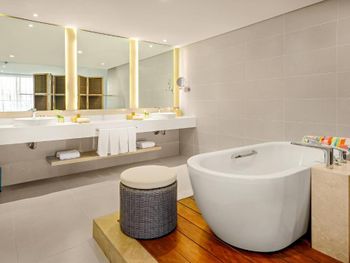 Номера и отель слегка подуставшие, в номерах сильная слышимость. В номере была заявлена кровать king-size, кровать действительно была огромная, но по факту это были две совмещенные односпальные кровати, поэтому кто-то постоянно скатывался в серединку. На ужине очень долгое обслуживание в ресторане The Kitchen - примерно час ждали, пока к нам подойдут и примут заказ, примерно столько же еду и минут 40 мороженое. Еда при этом вкусная, но не стоит потраченного времени.