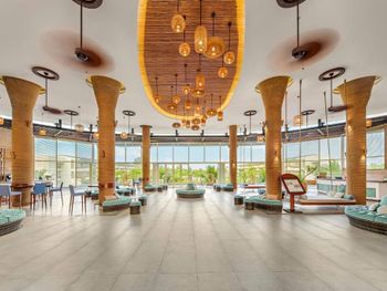 В остальном отель полностью разочаровал. На пляже кусаются песчаные блохи, а в море планктоны. Цвет воды зеленовато-коричневый, сама вода грязная (при нас туристы вытащили со дна чью-то футболку). Белый песок на пляже привозной и уже почти полностью смыт водой, остался желтый. Пляж от мусора персонал отеля не чистит. Хоть отель и достаточно новый все номера просто в ужасном состоянии, угввзданые. Убираются ужасно, ничего не протирают, пол всегда грязный, несмотря на то, что у нас была высокая категория номера. Вода в отеле золотая, стоит 4 евро очень маленькая бутылочка. В разных барах все коктейли и количество вина в бокалах отличается, хоть и стоят везде одинаково. Еда в ресторане однообразная. НЕТ ассортимента фруктов и морепродуктов, рыбы, то зачем мы ехали к морю и хотели наесться. Персонал плохо обслуживает, очень медленно, как будто специально не замечает и практически не говорит по-английски, объяснится очень сложно. Также, в отеле очень СКУЧНО и по вечерам совершенно нечего делать. Играет только живая, но далеко не танцевальная хоть и живая музыка в баре. На это все развлечения закончены. За территорией ничего кроме грязного местного рынка тоже нет. Так что если вы любите отдыхать весело, то вам точно не в этот отель. И, последнее, в отеле есть «спортзал» в котором две дорожки и пару тренажеров и размером он как маленькая комнатка 4 на 4, так что занимался там невозможно, особенно когда много народу.