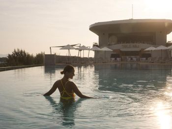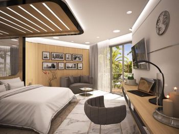 Классный новый отель, чистые функциональные номера с кухней с кофе машиной, раковиной, большим холодильником, микроволновкой и всей необходимой посудой, балкончиком и приятными мелочами (в номере был коврик для йоги,мфр ролл, массажный валик и шарик, кубики для растяжки, резинки для тренировок, даже аппликатор Кузнецова)))). Очень тактичный персонал. Номера и отель хорошо убирают. Вид из окна у нас был на небольшое озеро и гористый выступ острова и море. В бассейн мы так и не сходили, потому что рядом было море, но с виду бассейн красивый. Ресторан на 7 этаже с красивым видом.