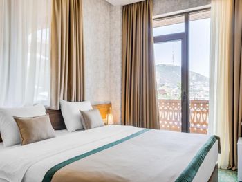 Приятный отель, просторный и комфортный номер. У нас был отличный вид из окна. Недалеко от отеля находится туристический центр - серные бани, откуда часто отправляются туристические автобусы по разным маршрутам по Грузии. Каждый день нам ставили новые бутылочки с водой.