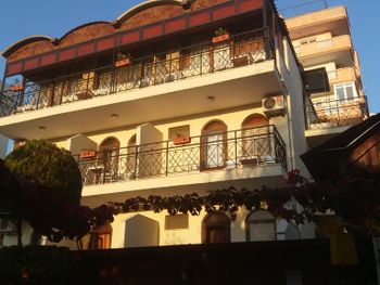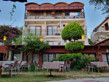 Небольшой отель недалеко от моря. Номера чистые,но старые,вода горячая то есть,то ее нет. Утром завтрак, минимальный,однообразный,но в целом,наесться можно и достаточно вкусно (сыры,помидоры,огурцы,яйца,арбуз,джемы,нутелла,хлеб,оливки).Очень понравилось,что есть большой дворик,где как раз и подают завтрак,т.е.ощущаешь себя живущем на природе. Есть бассейн,но он работает только до 18 часов. До моря минут 8-10 пешком,рядом есть магазин продуктов.